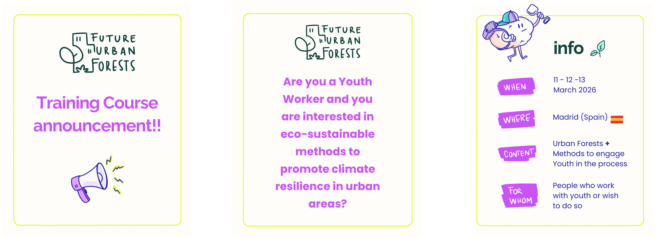 At the end of 2025 we had the pleasure to launch our Open Call for our upcoming training course in Madrid! We are looking to recruit a diverse group of participants that have one thing in common: to want to engage youth in the development of their own environments in a greener direction. We will be meeting up in Madrid for three days of workshopping, learning, meeting with city officials and seeing good examples.