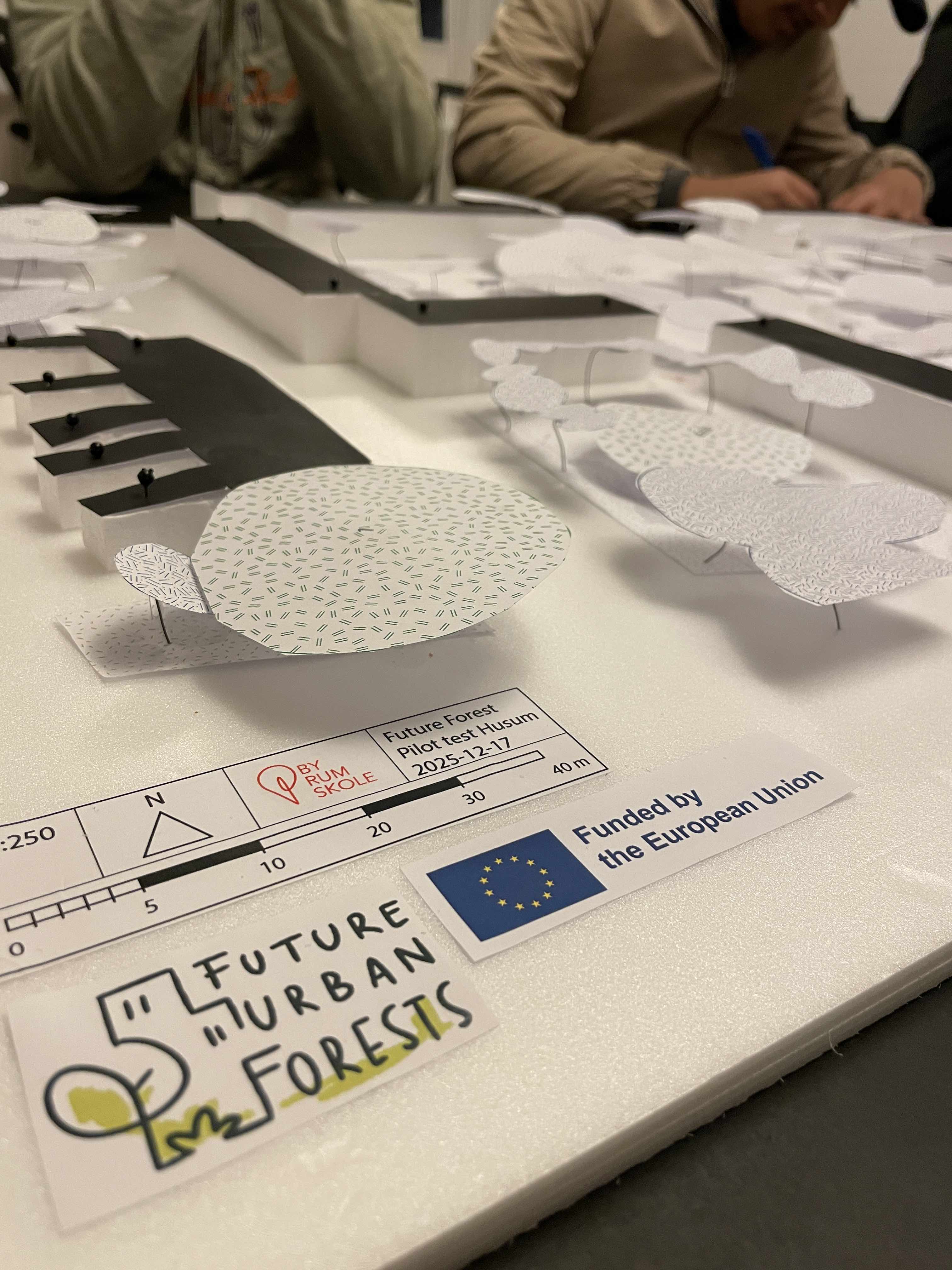 "Future Forests: Youth-led Strategies to Greening our Cities" aims creating a framework where youth is supported to lead the transformation of our cities into sustainable urban landscapes. The starting point is our previous work with Nordic Pocket Forests, research into the 3-30-300 method to assess urban greening as well as our previous work in youth engagement. We will co-create an attractive non-formal methodology, framework and Future Forests guidebook, a Training Course for youth workers in Madrid (where methods will be tested and fine-tuned) & local implementations with youth in each partner city: Copenhagen, Brussels & Madrid. In CPH we did pilot testing in Husum with a group of youth and their youth worker. We did a series of workshops with the group and we tested our method which included a fieldtrip, mapping activities, interviews and scale modelling.